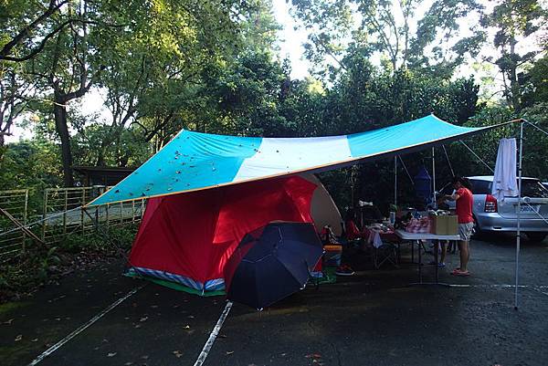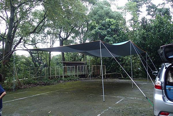 後來朋友們看過後草地沒有一塊是可以的,頂棚區又沒那麼多空位。眼看我們決定不露了,老闆娘說那中央廣場給你們用,我們看了看,裝備食材都準備了,好吧!至少不會踩在爛泥裡。