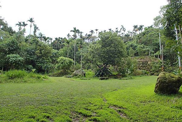 上A區,先看看草地的狀況。結果是一樣濕滑,雖沒積水但草上長滿青苔,看來不適合活動。真的很猶豫,勘察了一下,就開始飄雨了,先到涼亭處等朋友來,再說吧!