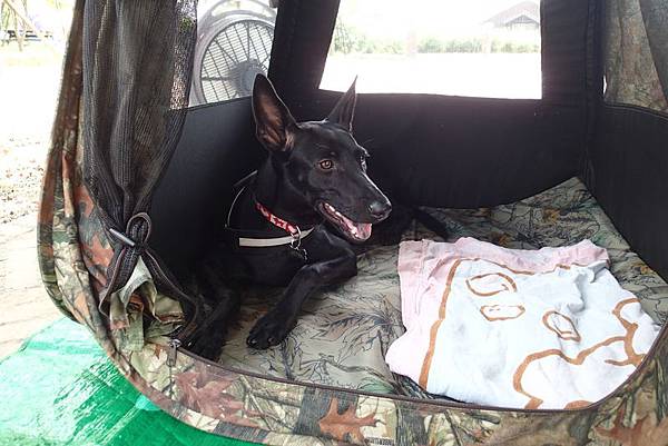回到營區休息,不知是台南的炮聲特別多,還是我們真會選。在荷蘭村一直聽到像炮的聲音,但又好像有頻率一般的固定。還有高鐡經過的聲音,讓COCO小姐緊張到躲在自己的窩裡,不敢出來。難得有那麼大的地方讓牠跑,真是太可惜了。
