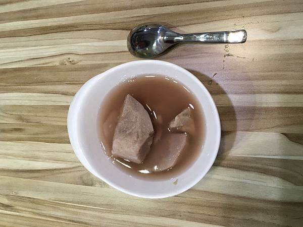 店長特別招待的小林村無毒芋頭煮成的蜜芋頭,好濃的芋頭味喔!