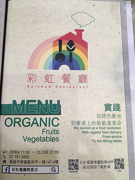 要用這麼頂級的食材去經營兩家平價的彩虹餐廳,真的是很困難的一件事。唯有消費者認真善待自己,認真選擇,才能支持這些有良心的店家安安穩穩的走下去。更是幫助友善種植的農友們,在經濟上不必擔憂的繼續種下去。友善環境,絕對是功德一件,因為不噴藥,就等於放生了千千萬萬的生命。您吃進去的每一口都深深影響著台灣的未來,當然也是您的未來。這場飲食新革命需要您的加入!